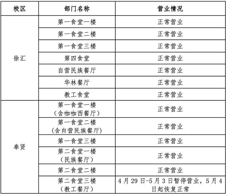1.两校区商业街商铺正常营业。