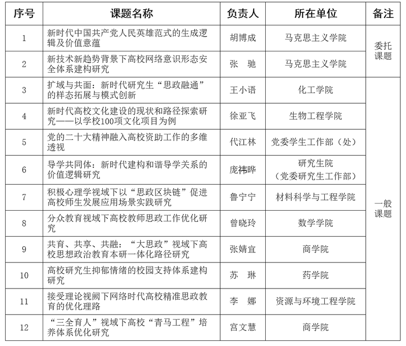附件:2023年度华东理工大学思政研究课题立项公示一览表