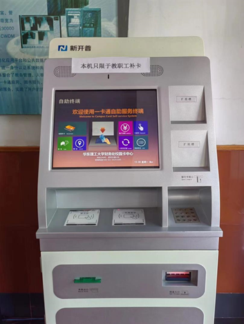 教职工自助补卡机可提供教职工校园卡的快速补卡服务,学生自助机可提供学生校园卡的快速补卡服务。