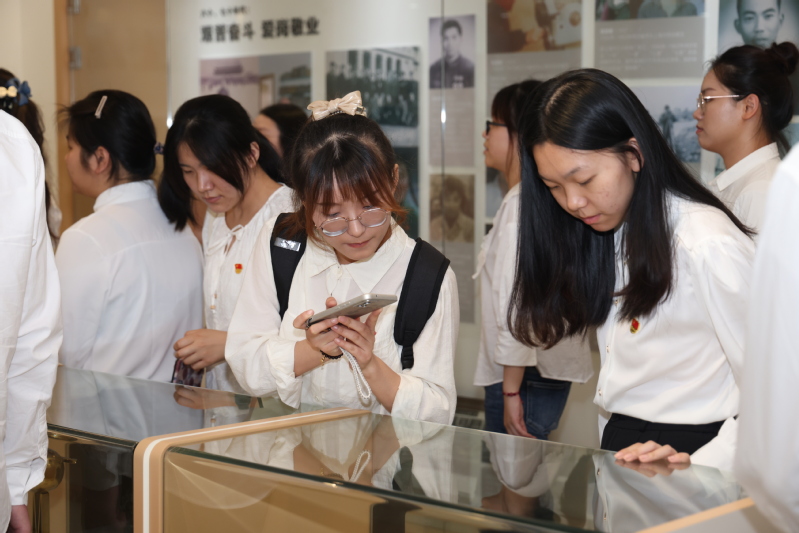图片说明:学生党员参观红润展厅