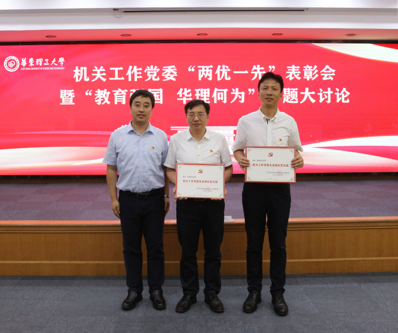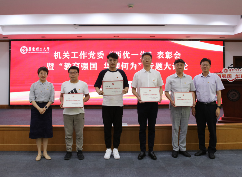 为庆祝中国共产党成立102周年,持续推动学习贯彻习近平新时代中国特色社会主义思想主题教育走深走实,6月27日下午,机关工作党委在逸夫楼演讲厅召开“两优一先”表彰会暨“教育强国 华理何为”专题大讨论。校党委书记杜慧芳出席会议并讲话,机关工作党委委员、机关党支部书记、特邀发言代表、机关“两优一先”受表彰对象、获评学校“两优一先”的机关代表等参加会议。会议由机关工作党委副书记周晓梅主持。