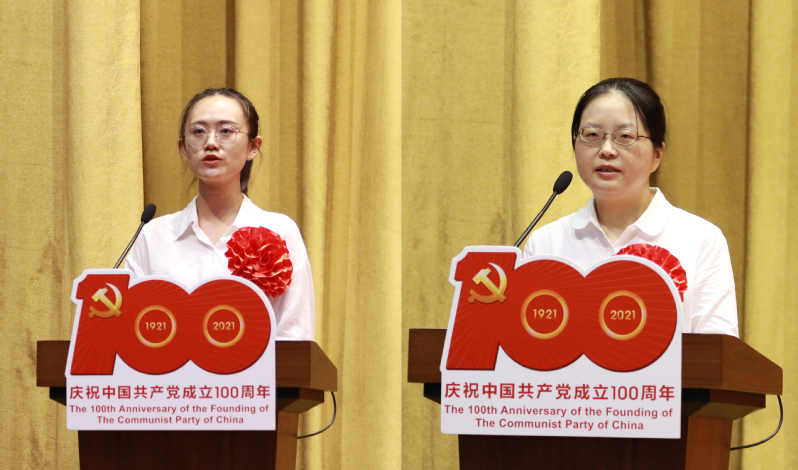 生工学院国重室研究生第五党支部书记张雅敬和外国语学院大学英语教师党支部书记朱晓琴代表先进基层党组织发言,讲述了研究生党支部积极发挥专业优势、助力脱贫攻坚和乡村振兴,以及教师党支部扑在教学一线、共育时代新人的建设情况。