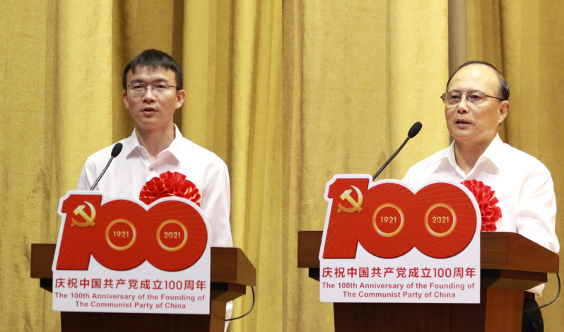 化学学院工业催化师生联合党支部书记詹望成和离退休工作党委委员兼22支部书记吴永奎代表优秀共产党员发言,分别讲述了潜心科研、勇攀科学高峰、加快关键核心技术攻关,以及发挥余热投身校园文化建设,以身作则做好疫情防控的经历。