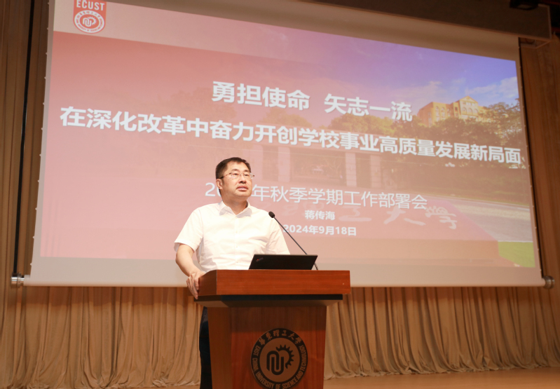 为进一步凝聚奋进力量,高质量推进学校年度重点工作落地见效,9月18日下午,华东理工大学2024年秋季学期工作部署会暨党委理论学习中心组(扩大)学习会在商学院大楼406室召开。校党委书记蒋传海、校长轩福贞出席会议并讲话,部署秋季学期学校党政重点工作。会议由蒋传海主持。