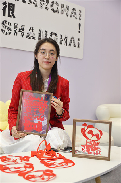 这次,她也把自己的特长融入进来,希望在这一对外开放的重要平台上更好发挥青年力量,宣传非遗剪纸的魅力和影响力,用可亲的方式,诠释新时代的剪纸艺术,弘扬中华优秀传统文化。