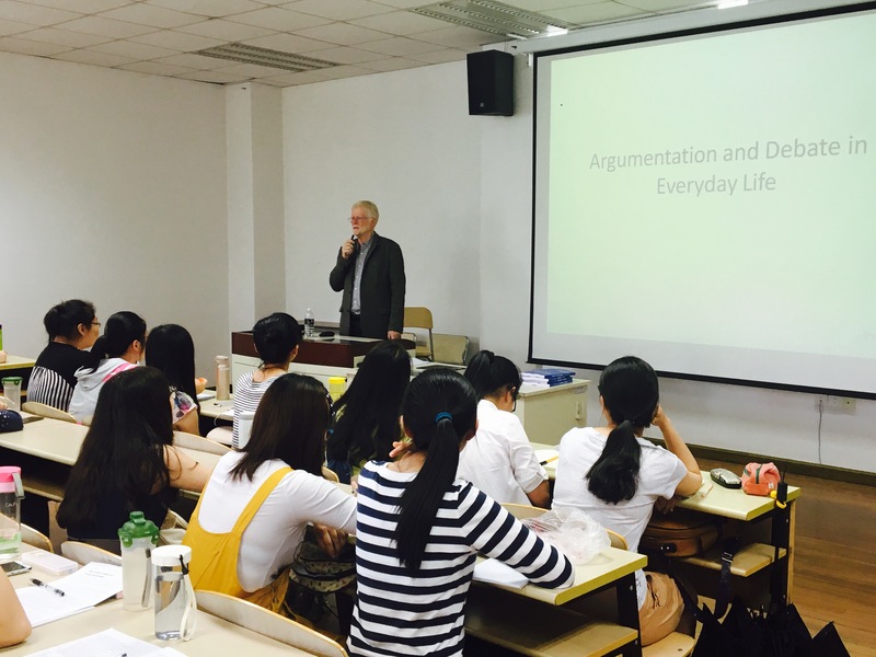 On invitation of the Speech and Debate Center of School of Foreign Languages, Professor Robert Trapp, Dean of the Department of Public Communication and Media Studies, Willamette University, USA, gave a lecture for students at Fengxian Campus on “Argumentation in Everyday Life” on June 6th,2016. In the lecture, Professor Robert Trapp demonstrated how to use the strategies and techniques to make opinions more convincing in view of the expressions in everyday life.