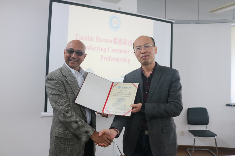 Professor Tasnim Hassan was appointed as Guest Professor of ECUST on April 13th,2017. Professor Xuan Fuzhen presided the appointment ceremony, introducing the major research achievements of Professor Tasnim Hassan and presented the Letter of Appointment to him. After the appointment ceremony, Tasnim Hassan made an academic report entitled “Unified constitutive modeling for low-cycle fatigue, Creep and Fatigue-Creep responses”, which aroused the great interests of teachers and students at present. They held in-depth discussion after the report.