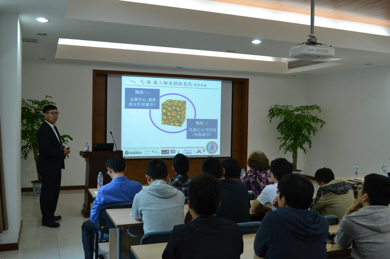 Dr. Zhang Pengfei of National Laboratory of Oak Ridge, USA, was invited to give a lecture on “Controlled Synthesis and Application of Catalysts in Multiphase Selective Oxidation Reactions” in ECUST on April 28th, 2017. This report was sponsored by the Project of Innovation and Expert Introduction of Chemical Reaction Engineering Science and Technology Base. Professor Zhu Youhong, Dean of School of Chemistry and Molecular Engineering, Professor Guo Yanglong, Professor Guo Yun and Professor Wang Xingyi attended the academic report.