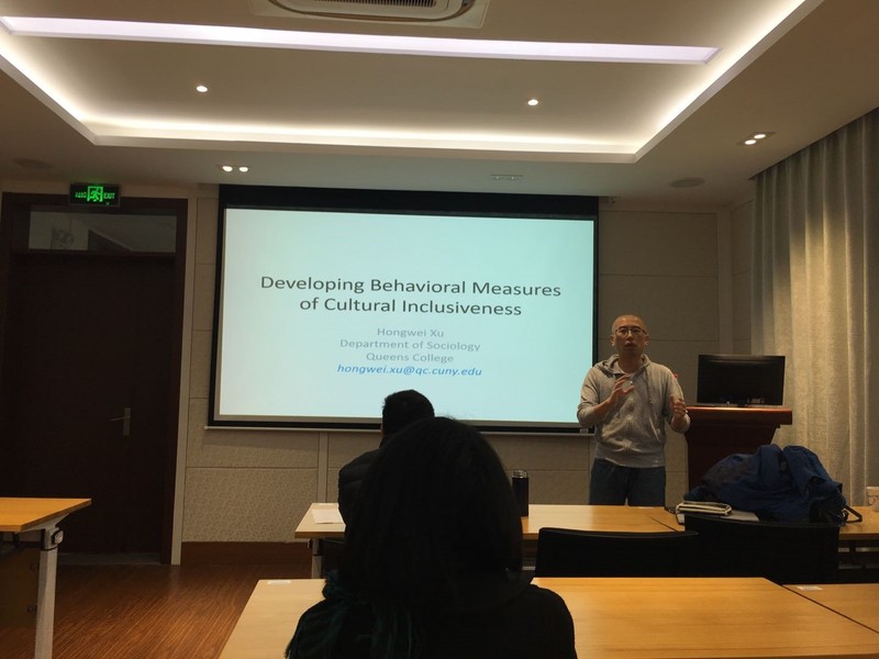 Xu Hongwei, an associate professor of sociology at Queen’s College, New York City University was invited to give keynote speech at the Research Methods Seminar of the Institute of Advanced Studies in Social Sciences at ECUST from December 26th to 28th, 2018. The seminar was hosted by Tang Youcai, Deputy Director of the Humanities and Social Sciences Department. More than 30 teachers and graduate students from the School of Social Sciences, School of Business and School of Marxism attended the seminar and various issues on the research methods, big data analysis, aging issues, protection of migrant children and the floating population were exchanged.