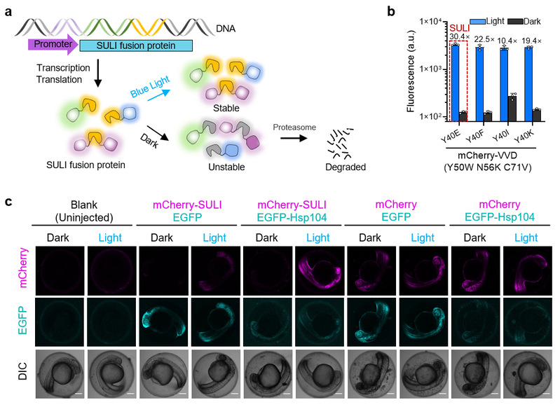 Recently, the research team of Professor Yang Yi from the School of Pharmacy, the State Key Laboratory of Bioreactor Engineering and the Interdisciplinary Research Center of optogenetics and Synthetic Biology, ECUST, made a breakthrough in the research of control technology in optogenetics, protein, and published a research article entitled “Controllingprotein stability with SULI, a highly sensitive tag for stabilization upon lightinduction” in the international academic journal Nature-Communications.