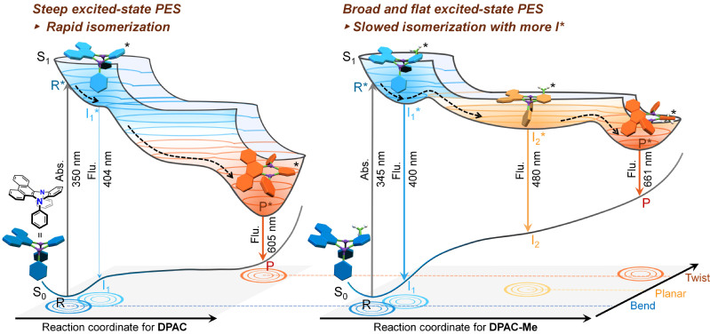 Recently, the research team of Academician Tian He from the School of Chemistry and Molecular Engineering, ECUST and the Joint Research Center of Feringa Nobel Prize Scientists have made important progress again in the research on the mechanism of vibration-induced luminescence (VIE). The related research article “Sequential Multistep Excited-State Structural Transformations in N,N′-Diphenyl-dihydrodibenzo[a,c]phenazine Fluorophores” was published in German Applied Chemistry.