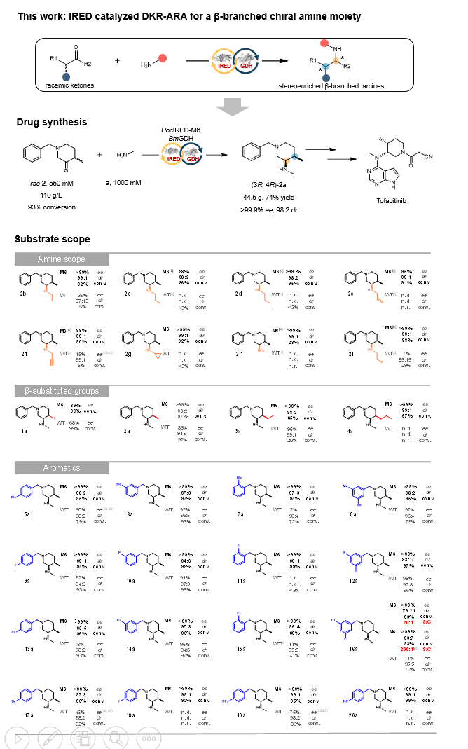 Recently, the research article of Professor Zheng Gaowei from the State Key Laboratory of Bioreactor Engineering of East China University of Science and Technology was published in German Applied Chemistry with the title of “An engineered mine reduction for high dia stereo-and enabling synthesis of β -branched amines with contiguous stereocenters”.