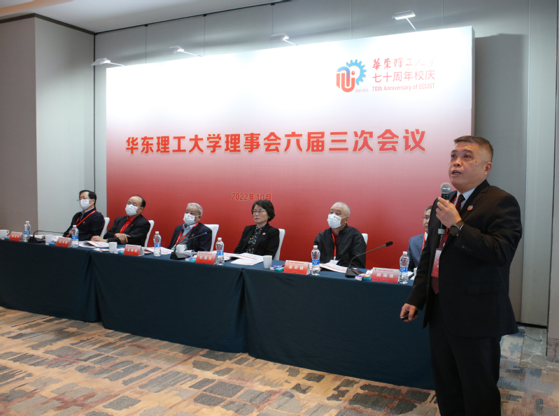 阳安江理事长因工作安排无法到现场参会,特别委托阎海峰转达他对学校70周年华诞的祝福。他表示,祝愿华东理工大学继往开来,再启新征程、再创新辉煌,并就理事会未来工作提出3点希望。一是在疫情常态化背景下,要持续做好理事会工作,加强交流合作,促进共同发展。二是要持续深化理事会与学校的交流合作,在决策咨询、产学研合作、人才培养、资金筹措、资源拓展等方面,多形式、多渠道地支持和助力学校发展,为推动学校“双一流”建设贡献智慧和力量。三是希望学校利用智力资源密集优势和学科特色为各位理事做好服务,获得理事和社会各界的认同与支持,形成更大的合力,促进共同发展。